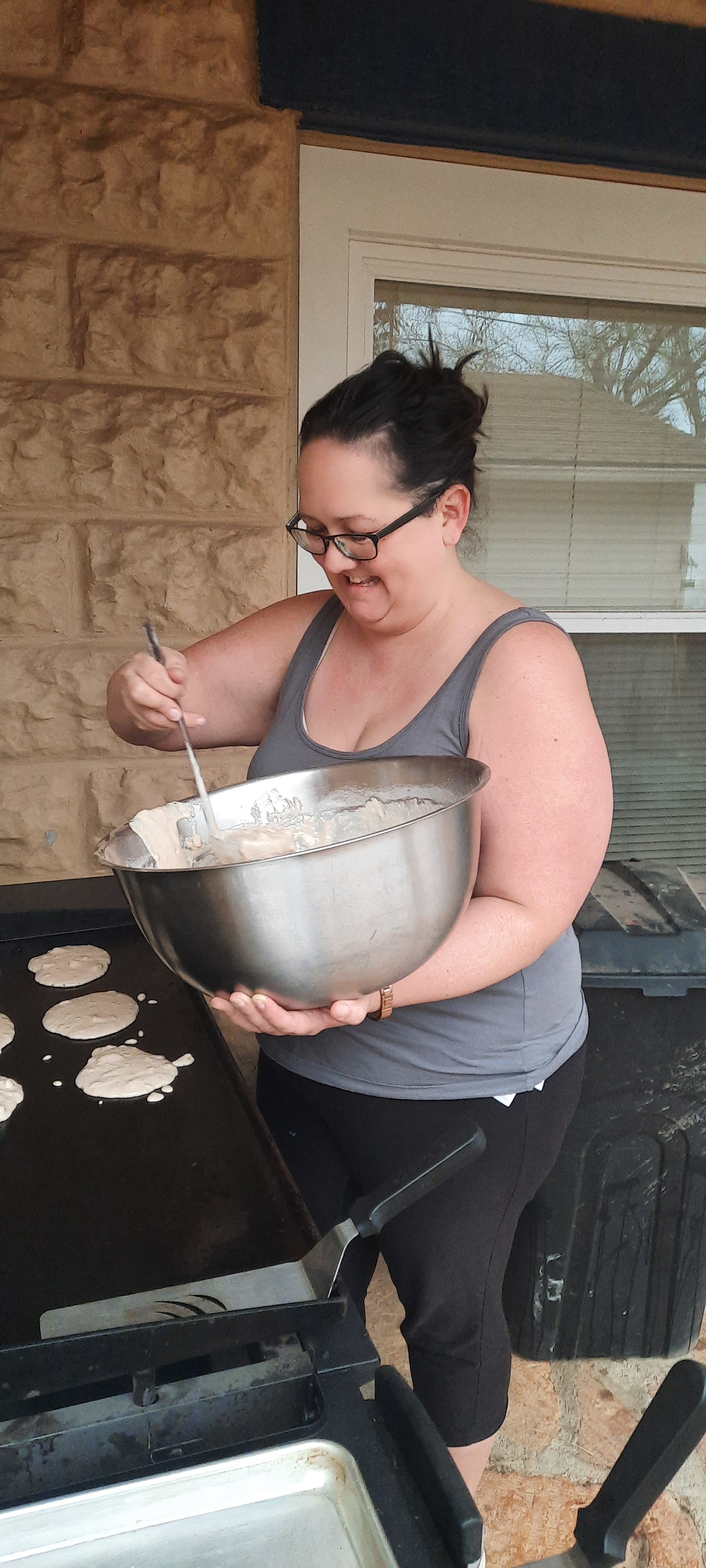 We also had a birthday in the beginning of the month, baby TAZ isn’t so baby like anymore… cue momma crying. Birthday’s around here usually mean pancakes or waffles for breakfast. The blackstone has certainly changed our breakfast game around here, especially in the nicer weather. We decided to do cinnamon banana pancakes, which the majority of the family topped with peanut butter and syrup.